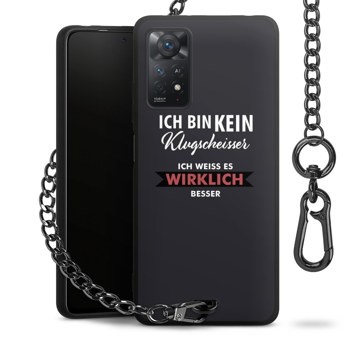 - Mattschwarze Handyhülle mit Metallkette