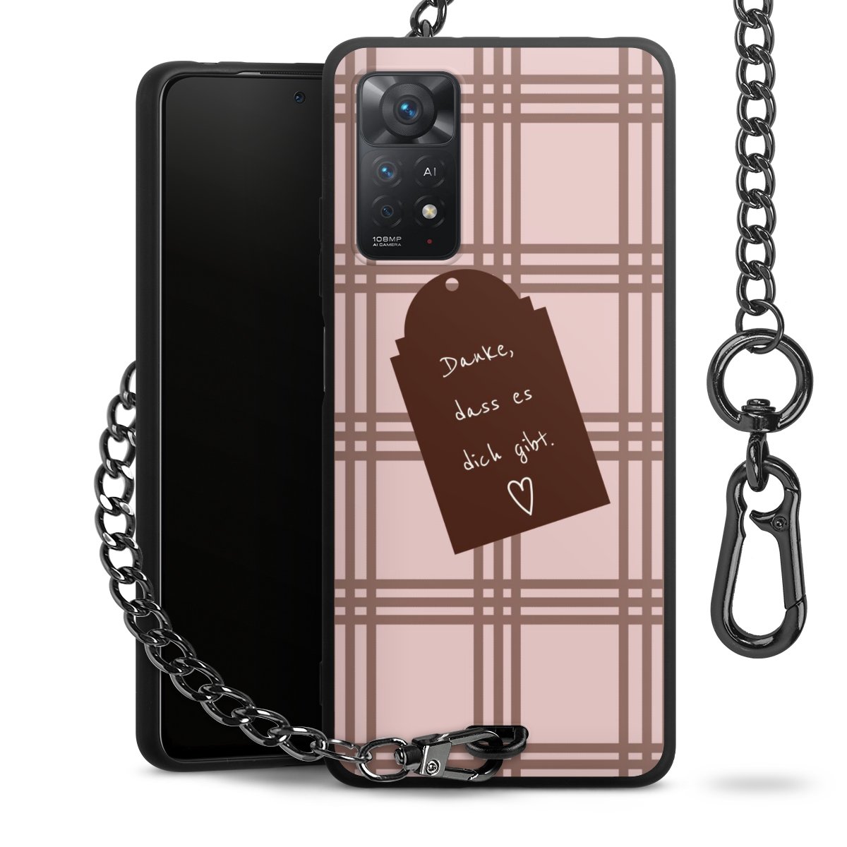 • Mattschwarze Handyhülle mit Metallkette