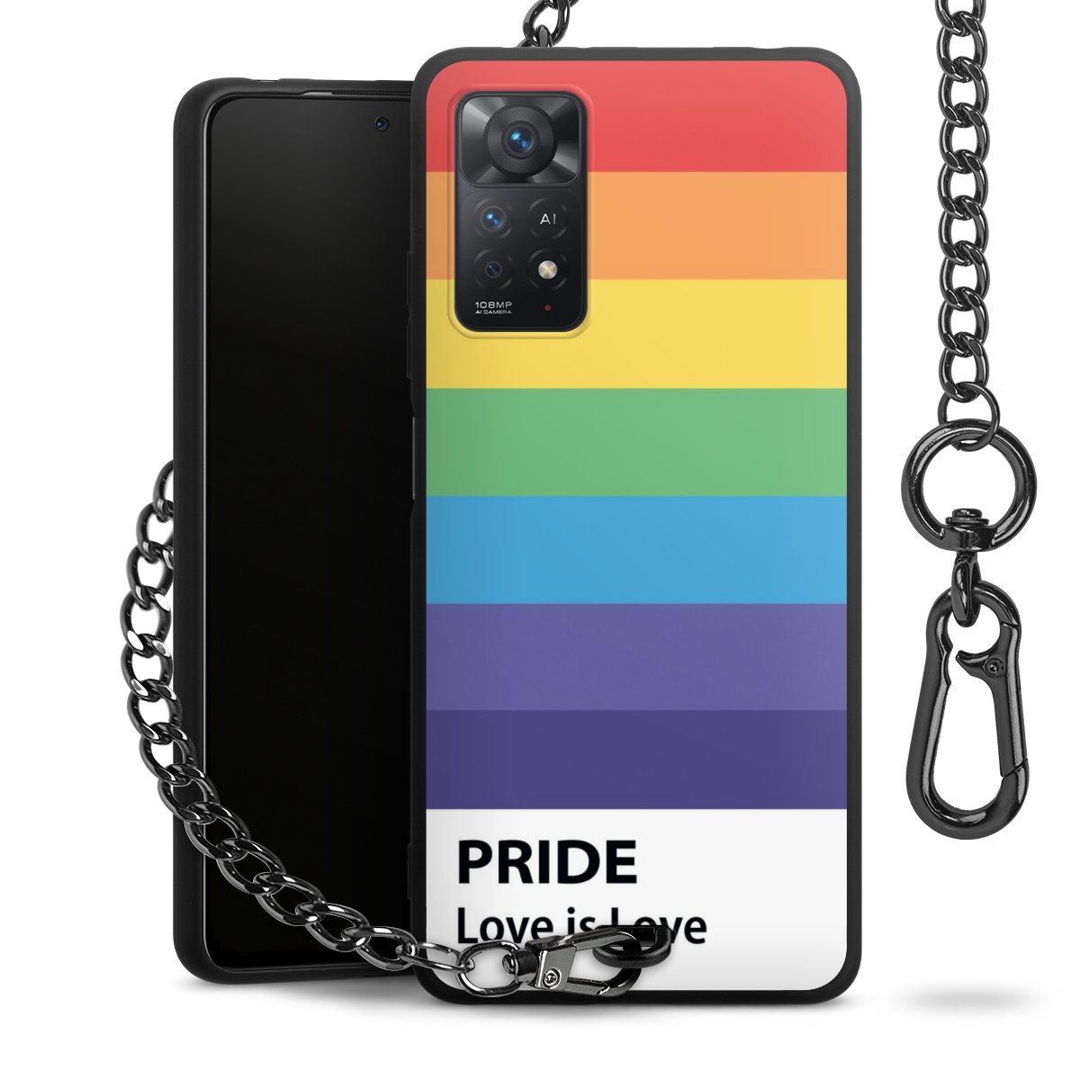 • Mattschwarze Handyhülle mit Metallkette