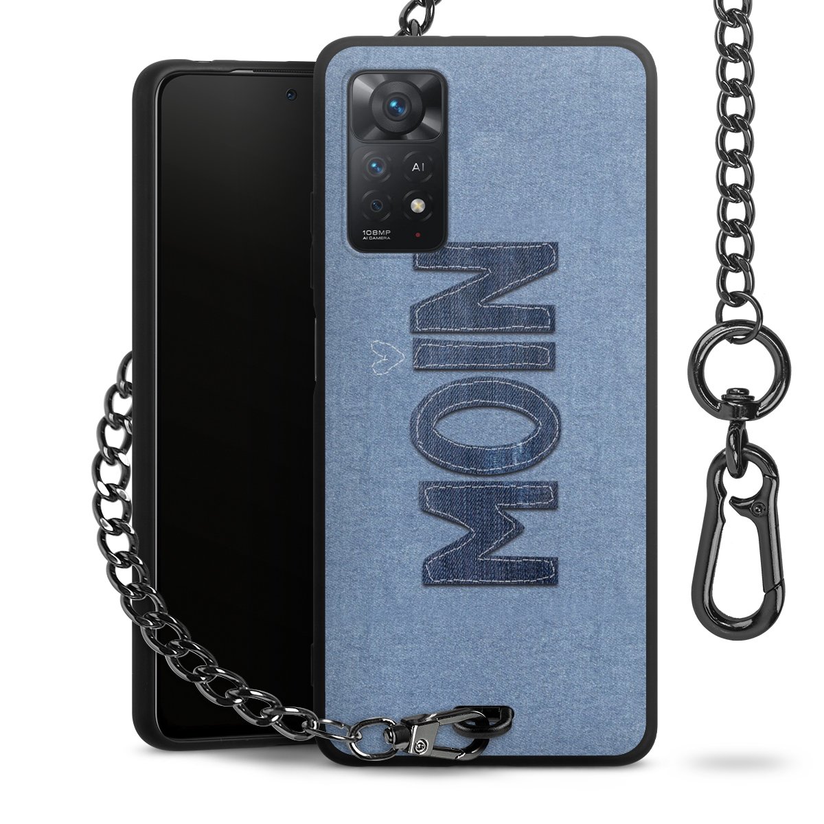 • Mattschwarze Handyhülle mit Metallkette