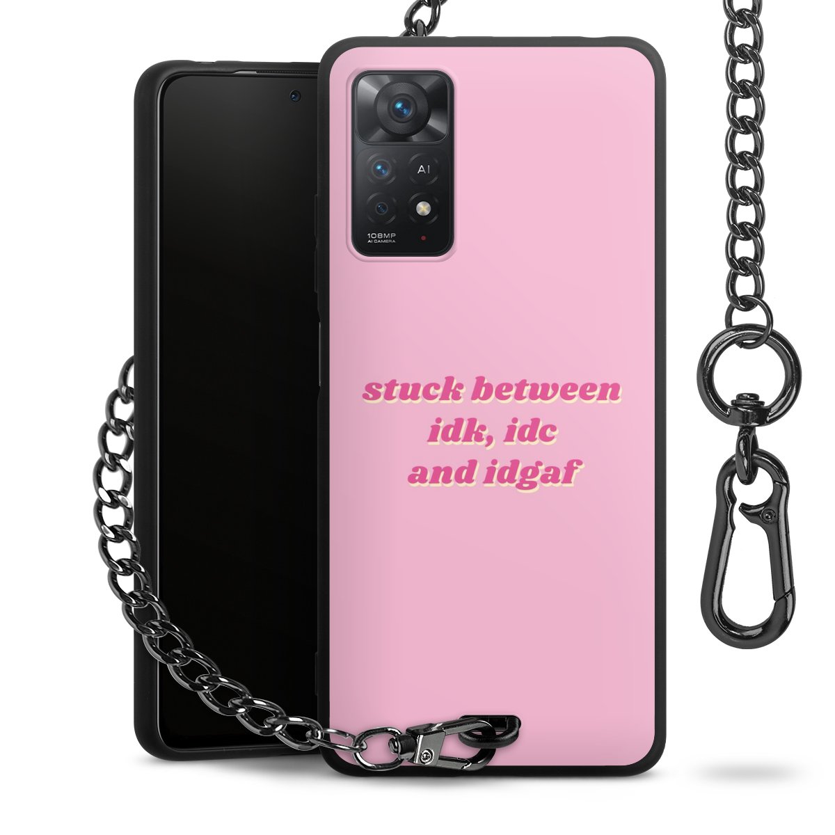 - Mattschwarze Handyhülle mit Metallkette