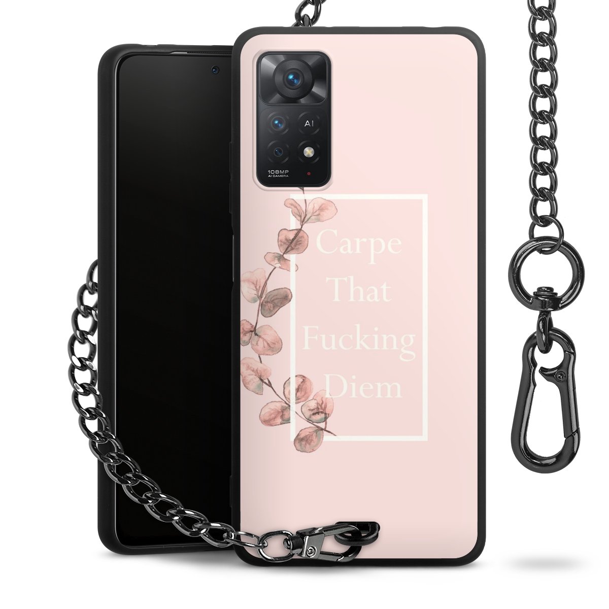 • Mattschwarze Handyhülle mit Metallkette
