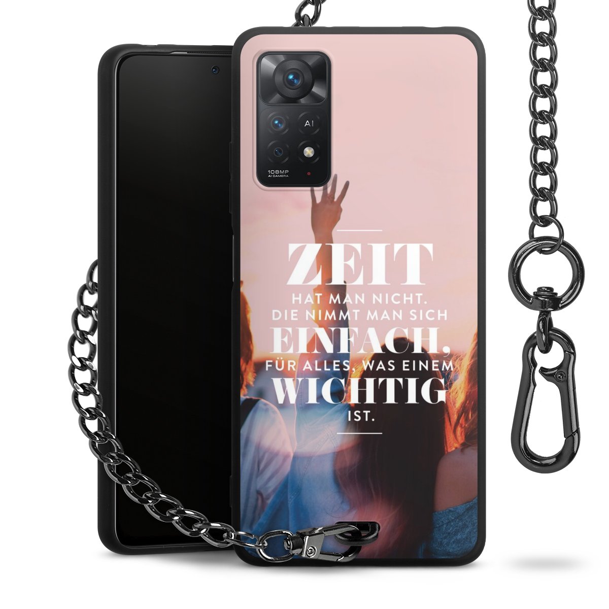 • Mattschwarze Handyhülle mit Metallkette