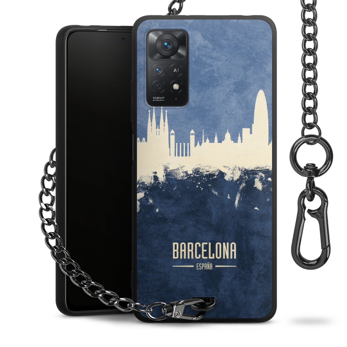 • Mattschwarze Handyhülle mit Metallkette