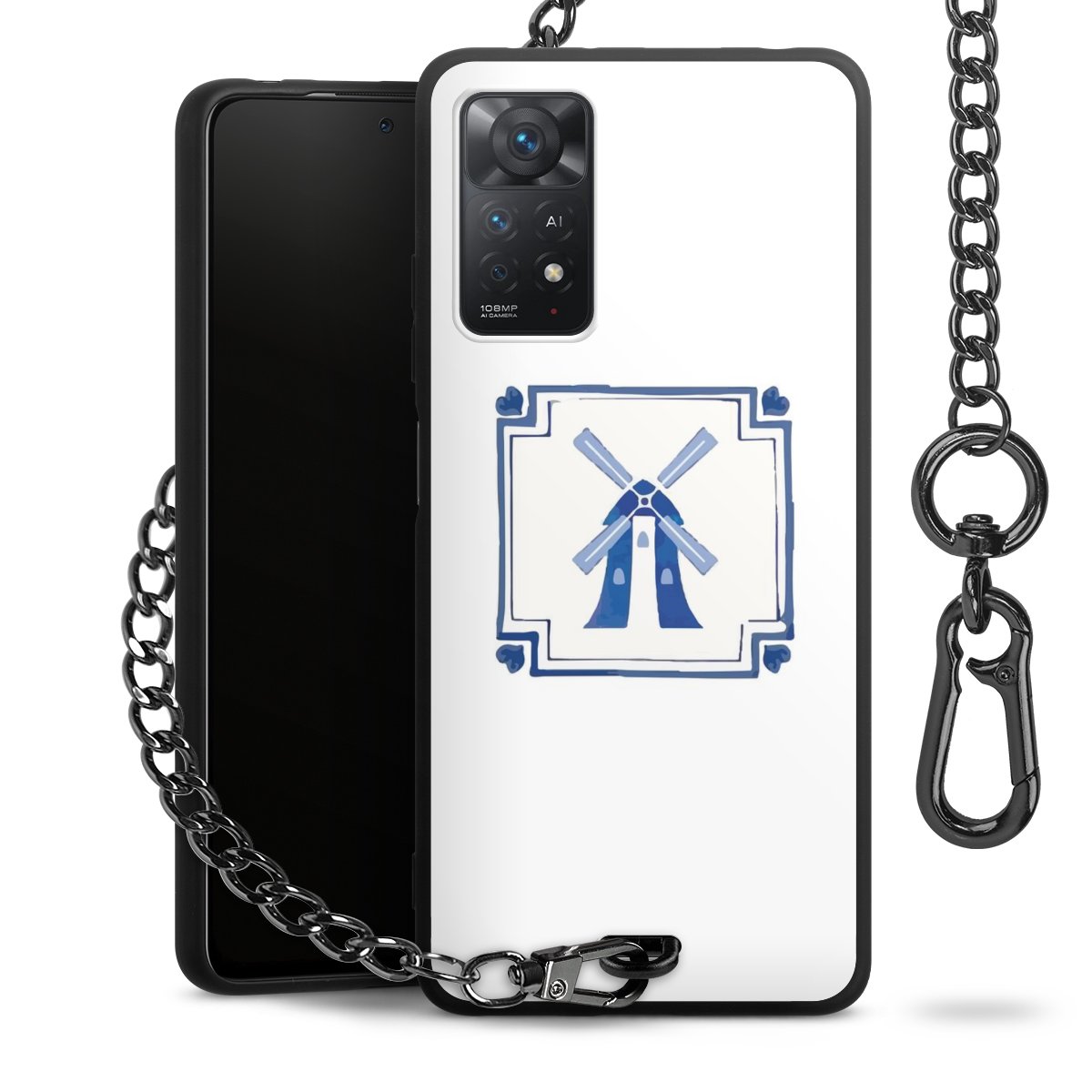 • Mattschwarze Handyhülle mit Metallkette