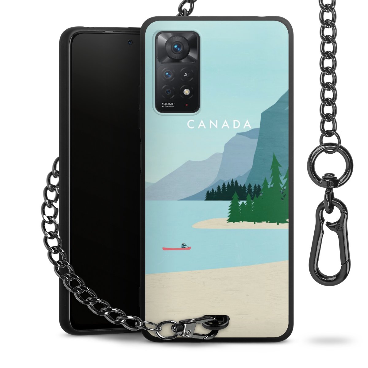 • Mattschwarze Handyhülle mit Metallkette