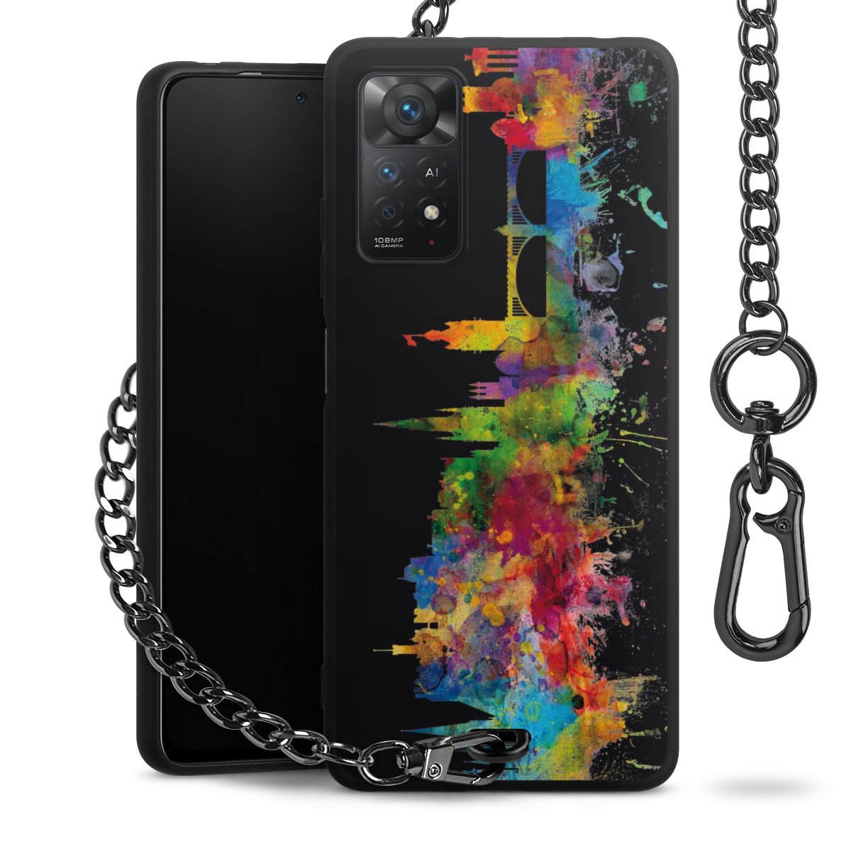• Mattschwarze Handyhülle mit Metallkette
