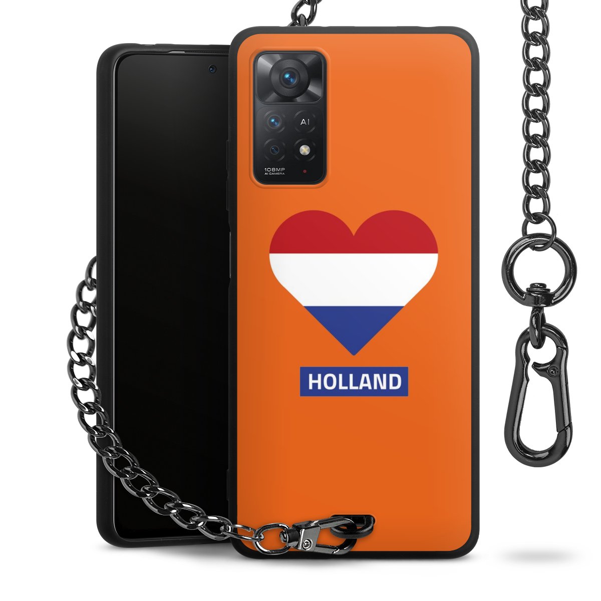 • Mattschwarze Handyhülle mit Metallkette