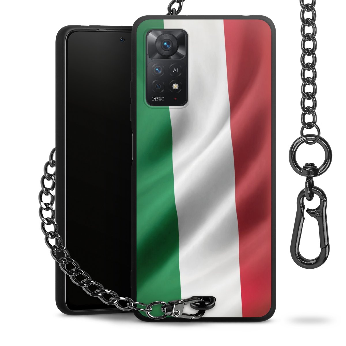 - Mattschwarze Handyhülle mit Metallkette