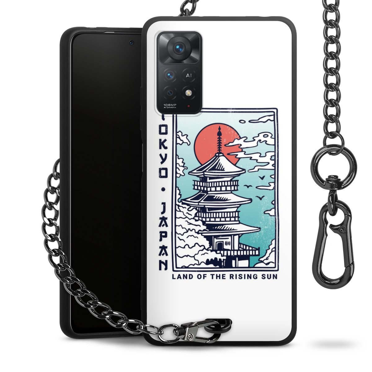 - Mattschwarze Handyhülle mit Metallkette