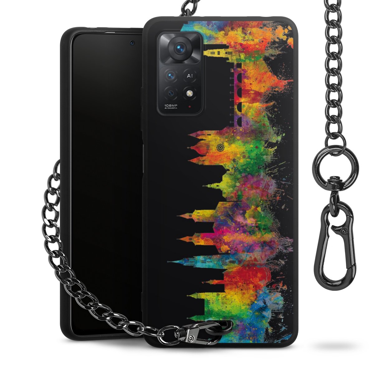 • Mattschwarze Handyhülle mit Metallkette