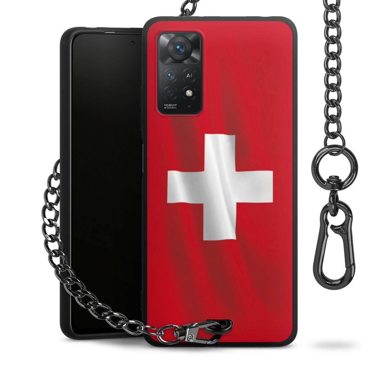 - Mattschwarze Handyhülle mit Metallkette