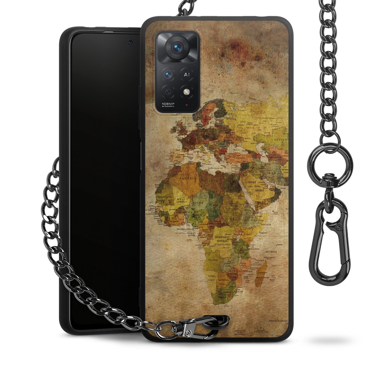 - Mattschwarze Handyhülle mit Metallkette