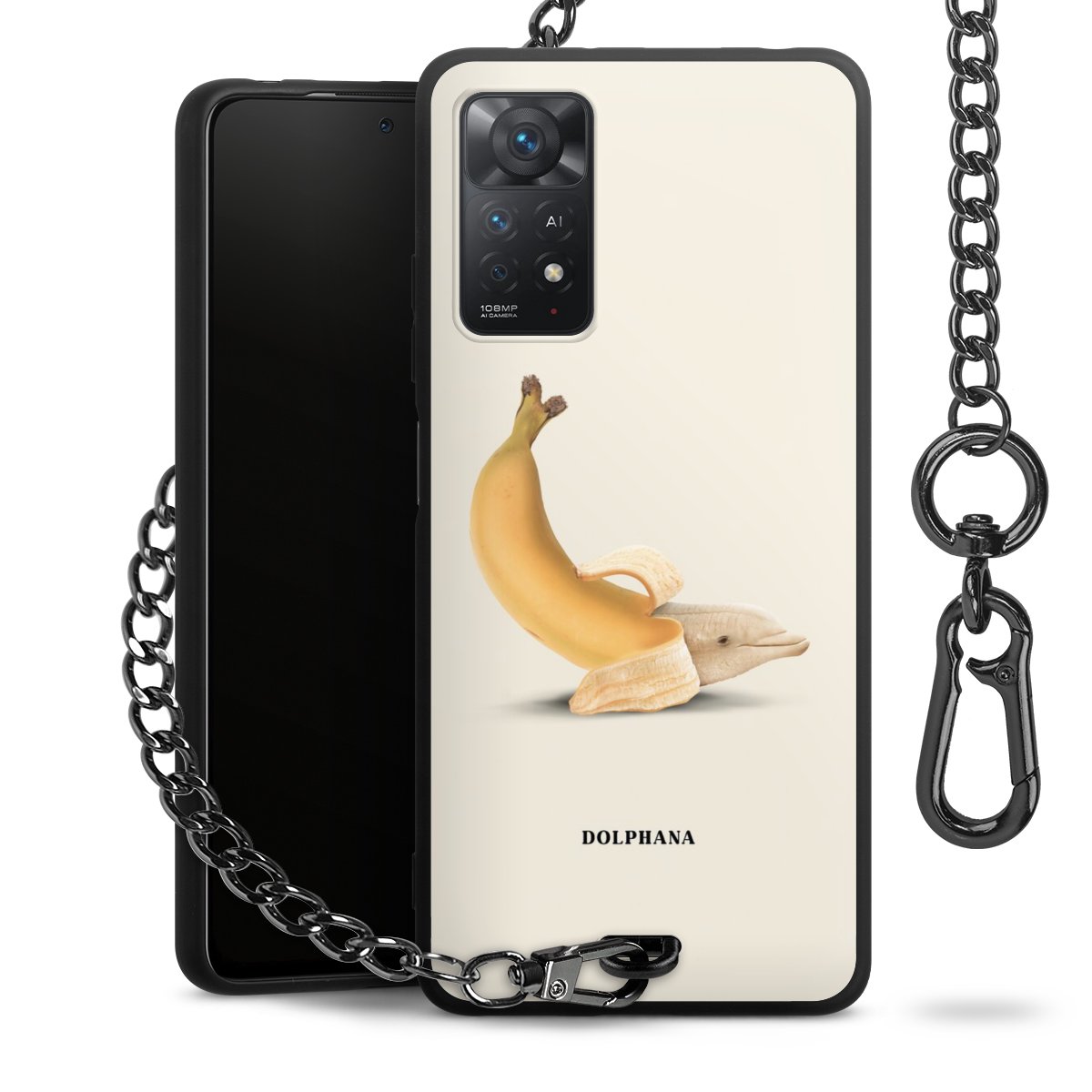 • Mattschwarze Handyhülle mit Metallkette