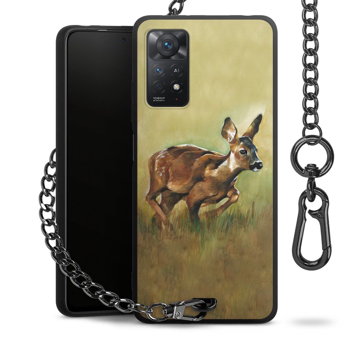 • Mattschwarze Handyhülle mit Metallkette