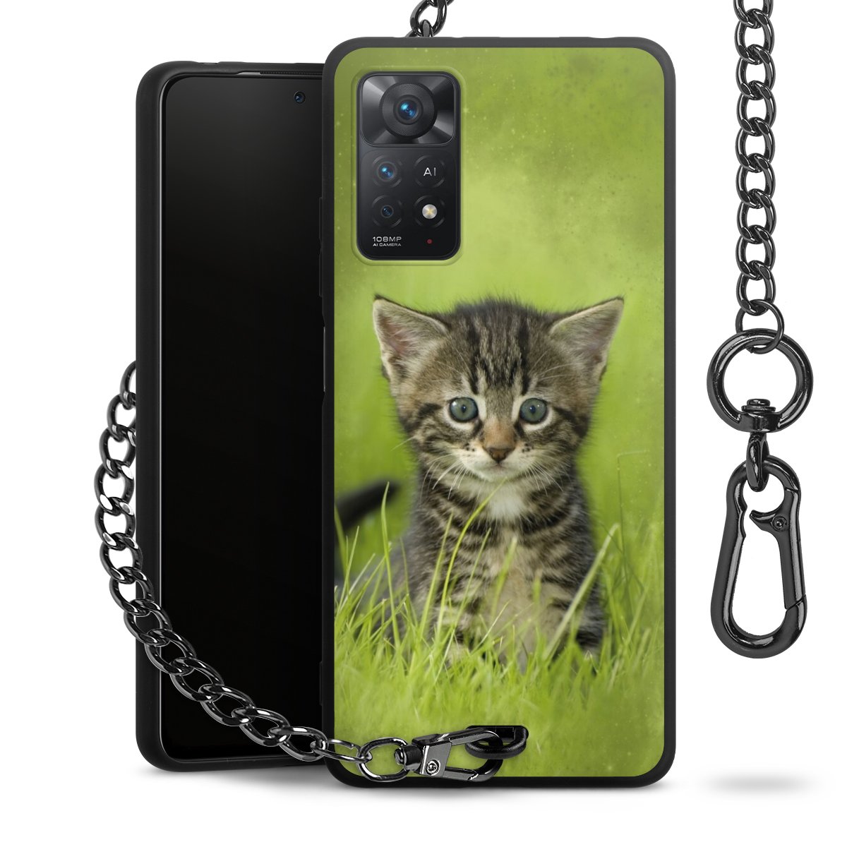 - Mattschwarze Handyhülle mit Metallkette