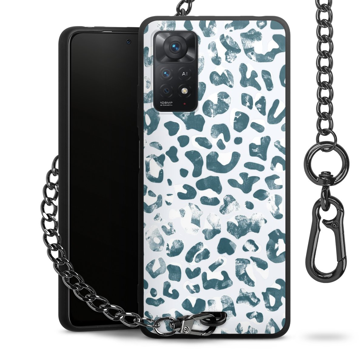 • Mattschwarze Handyhülle mit Metallkette
