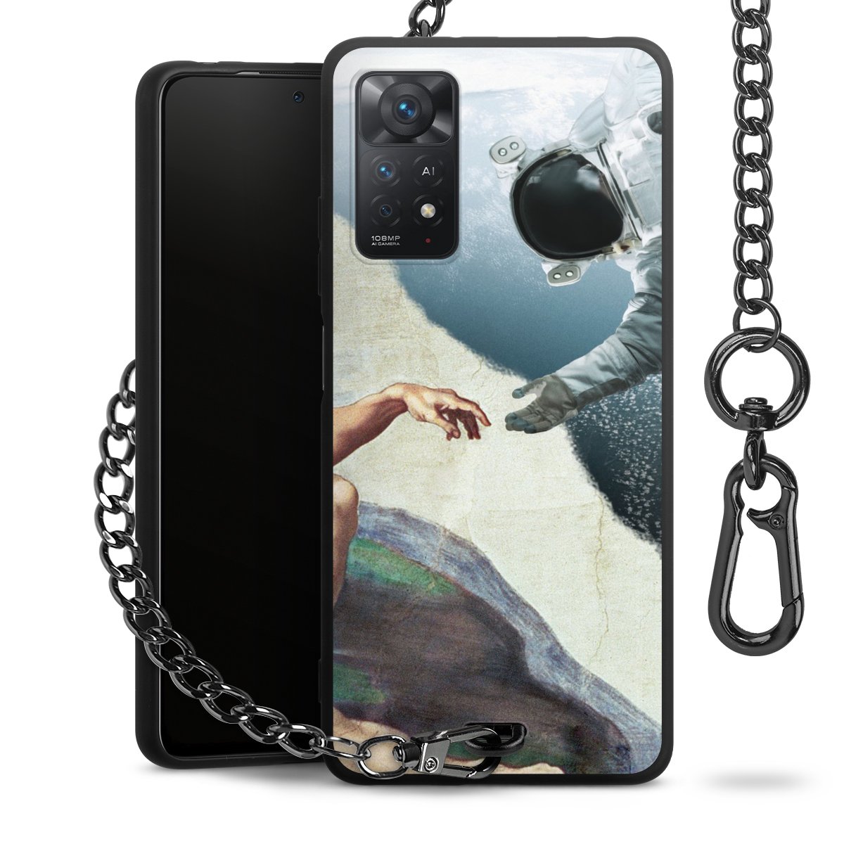 - Mattschwarze Handyhülle mit Metallkette
