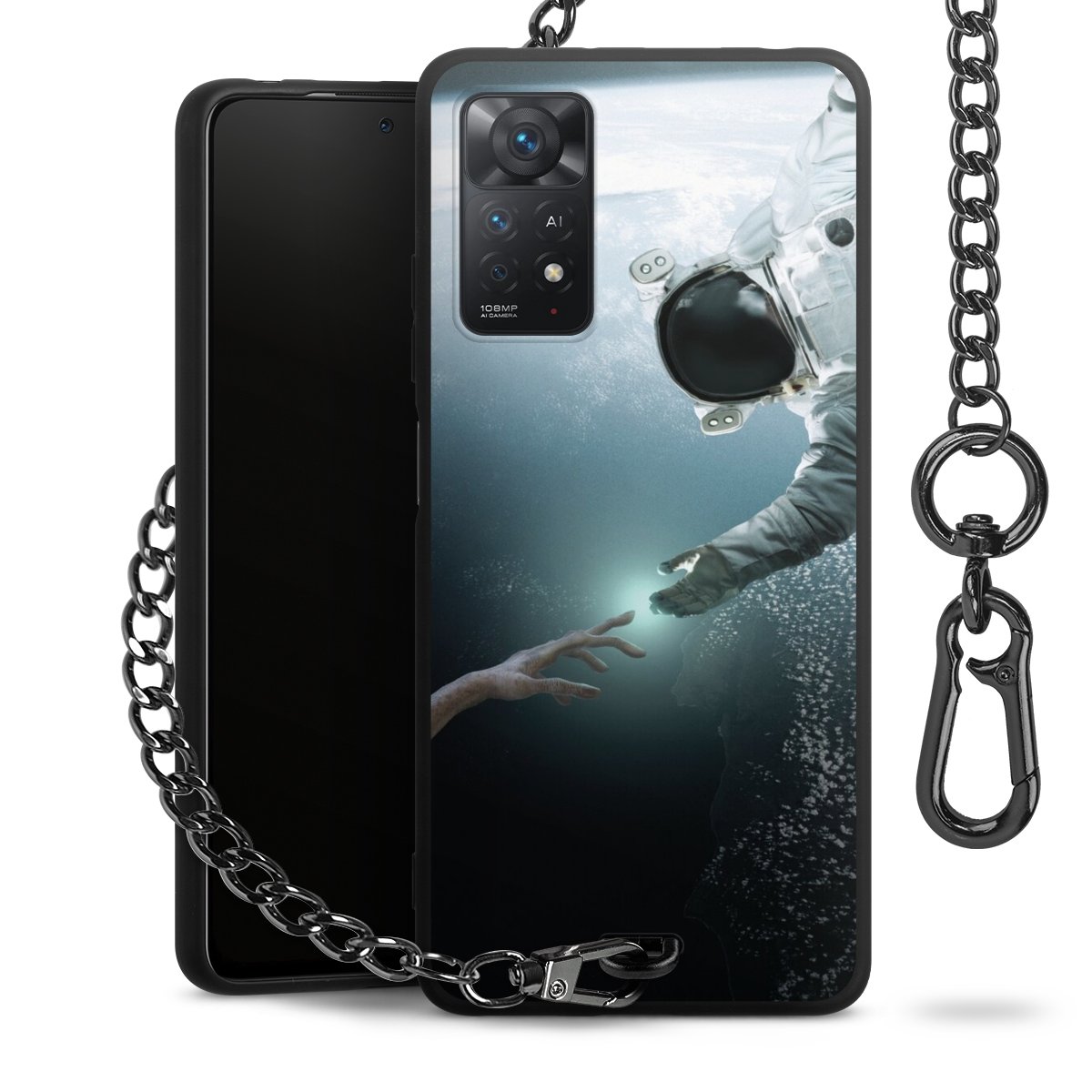 • Mattschwarze Handyhülle mit Metallkette
