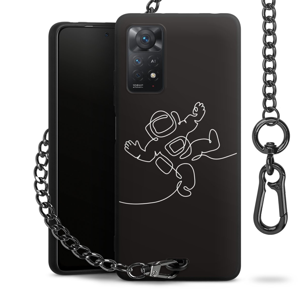 - Mattschwarze Handyhülle mit Metallkette