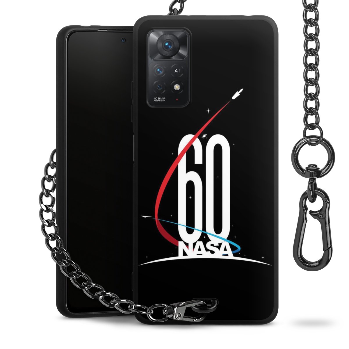 - Mattschwarze Handyhülle mit Metallkette