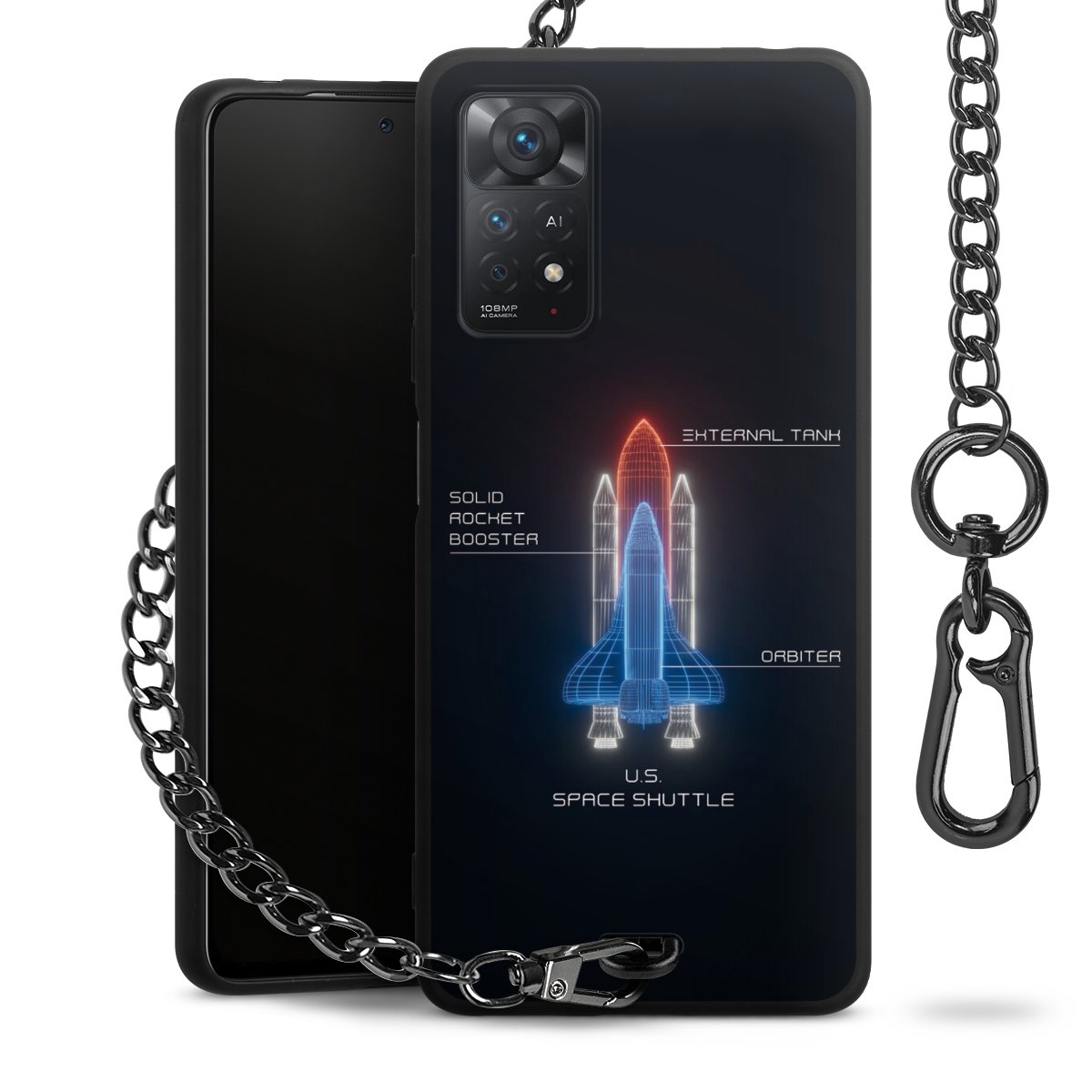 • Mattschwarze Handyhülle mit Metallkette