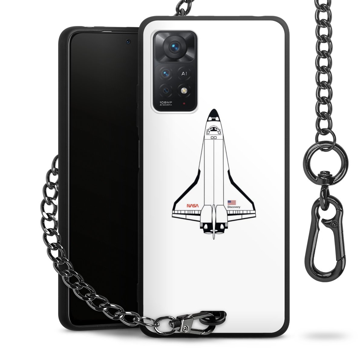 - Mattschwarze Handyhülle mit Metallkette