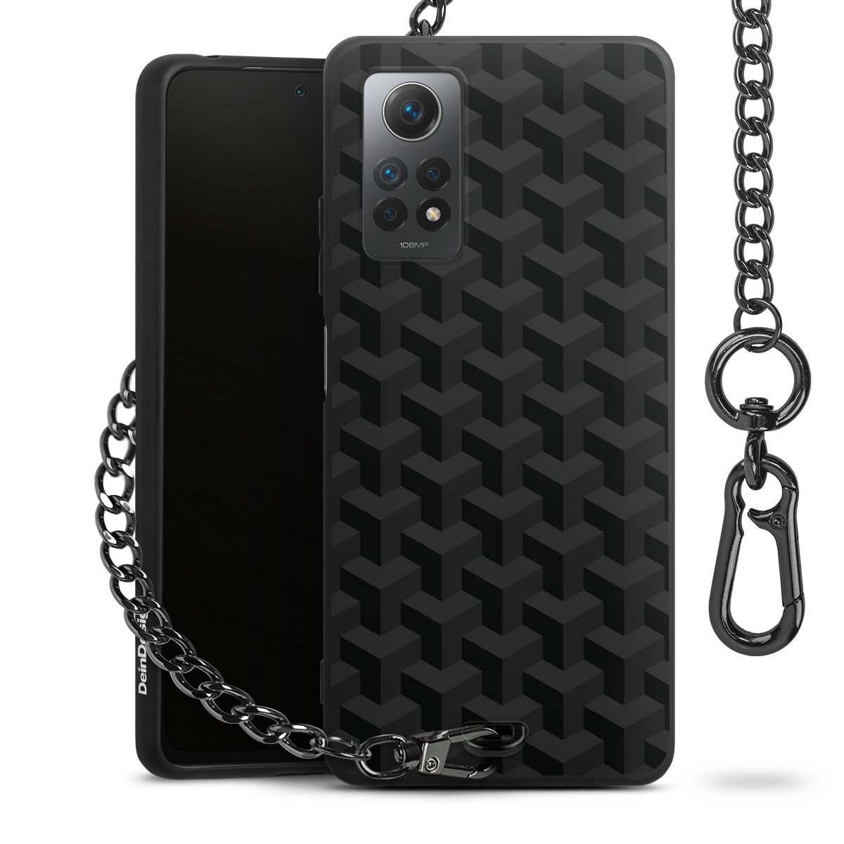 • Mattschwarze Handyhülle mit Metallkette