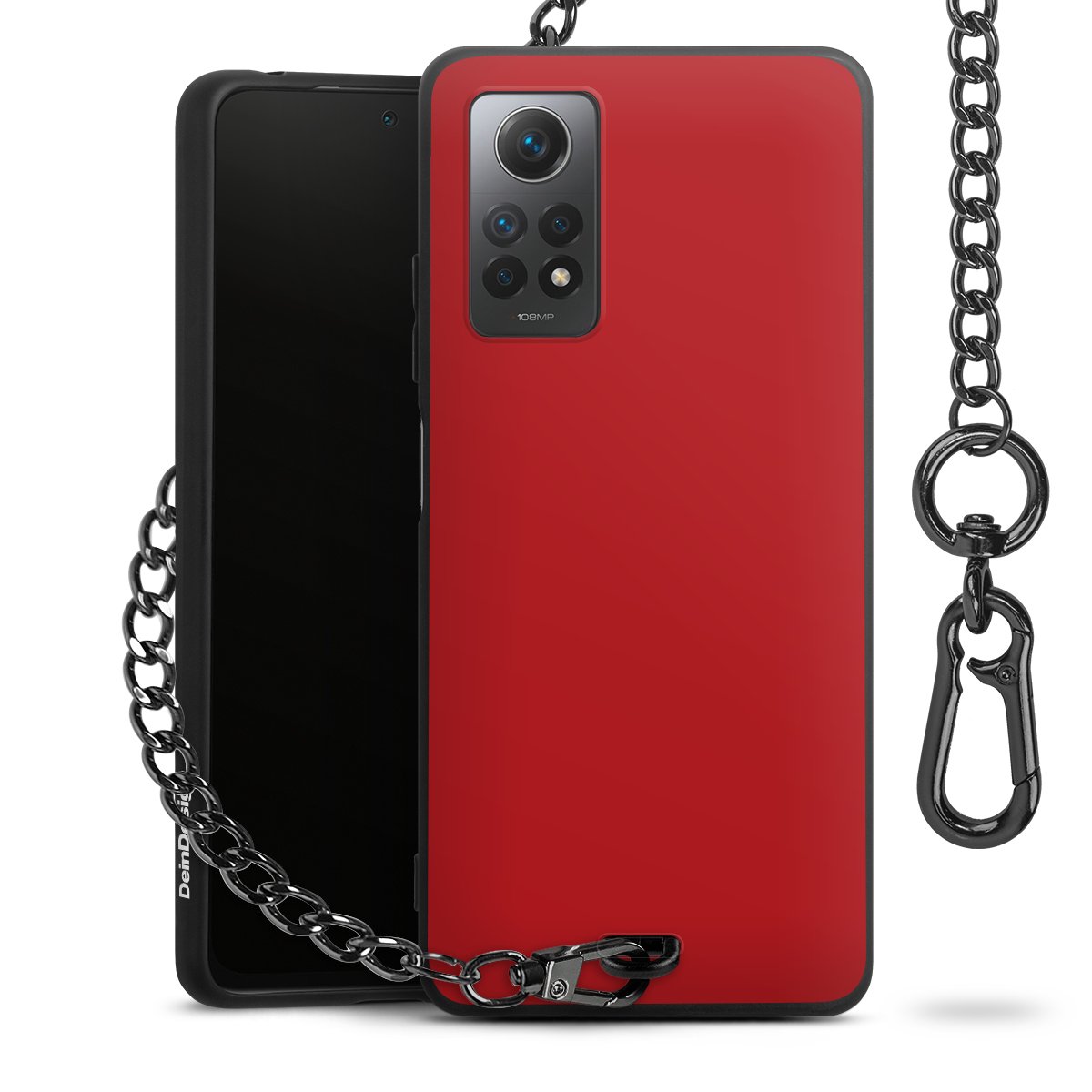 - Mattschwarze Handyhülle mit Metallkette