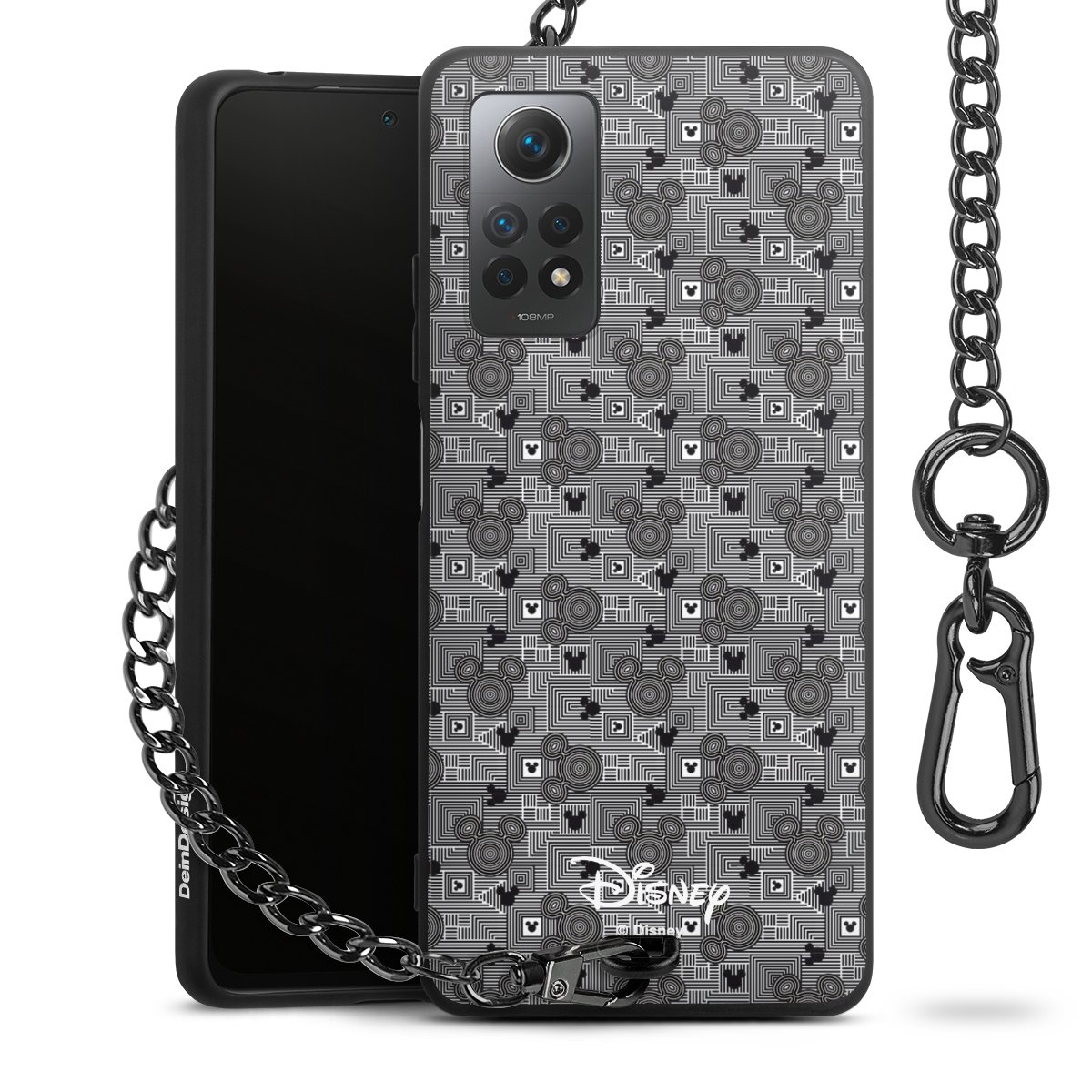• Mattschwarze Handyhülle mit Metallkette