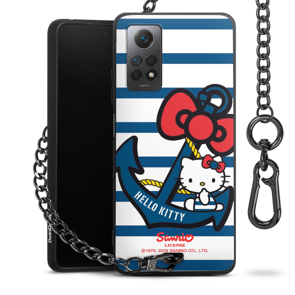Die mattschwarze Silikon-Handyhülle besteht aus robustem TPU (thermoplastisches Polyurethan). Sie ist flexibel und schützt Dein Smartphone vor Stößen und Kratzern. Die Kette sowie der Karabinerhaken sind aus Metall in Gunmetal-Optik gefertigt. Für dieses Produkt kommen ausschließlich TÜV-geprüfte Materialien zum Einsatz.
