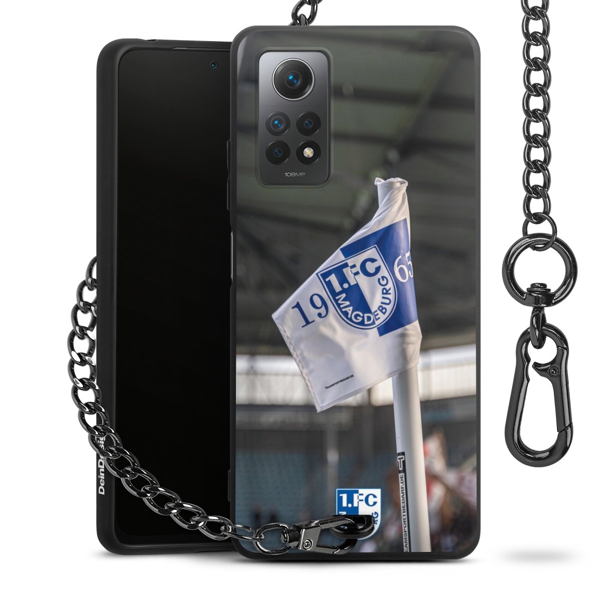 Die Handyhülle verfügt über eine mittig am unteren Rand platzierte Öse, an der die Metallkette stabil befestigt ist. Bestelle die Hülle einfach für Dein Smartphone-Modell, dann passt sie wie angegossen und Du brauchst sie bloß einmal anzudrücken. Handy in die Tasche, Karabiner an den Hosenbund – schon kann die Party starten.
