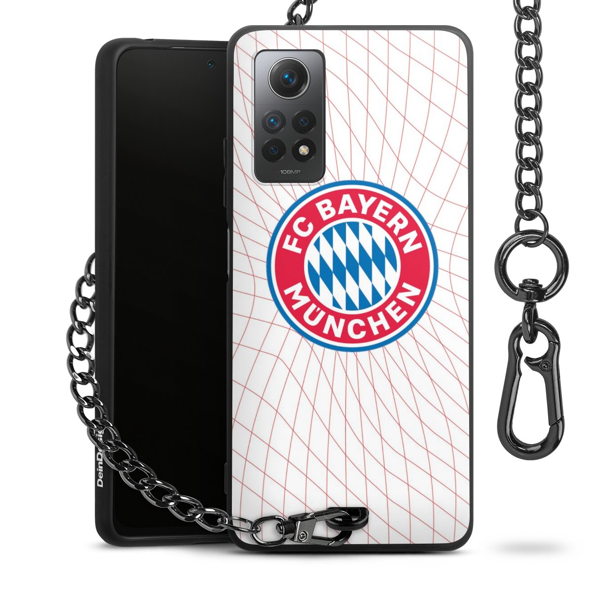 Die Handyhülle verfügt über eine mittig am unteren Rand platzierte Öse, an der die Metallkette stabil befestigt ist. Bestelle die Hülle einfach für Dein Smartphone-Modell, dann passt sie wie angegossen und Du brauchst sie bloß einmal anzudrücken. Handy in die Tasche, Karabiner an den Hosenbund – schon kann die Party starten.