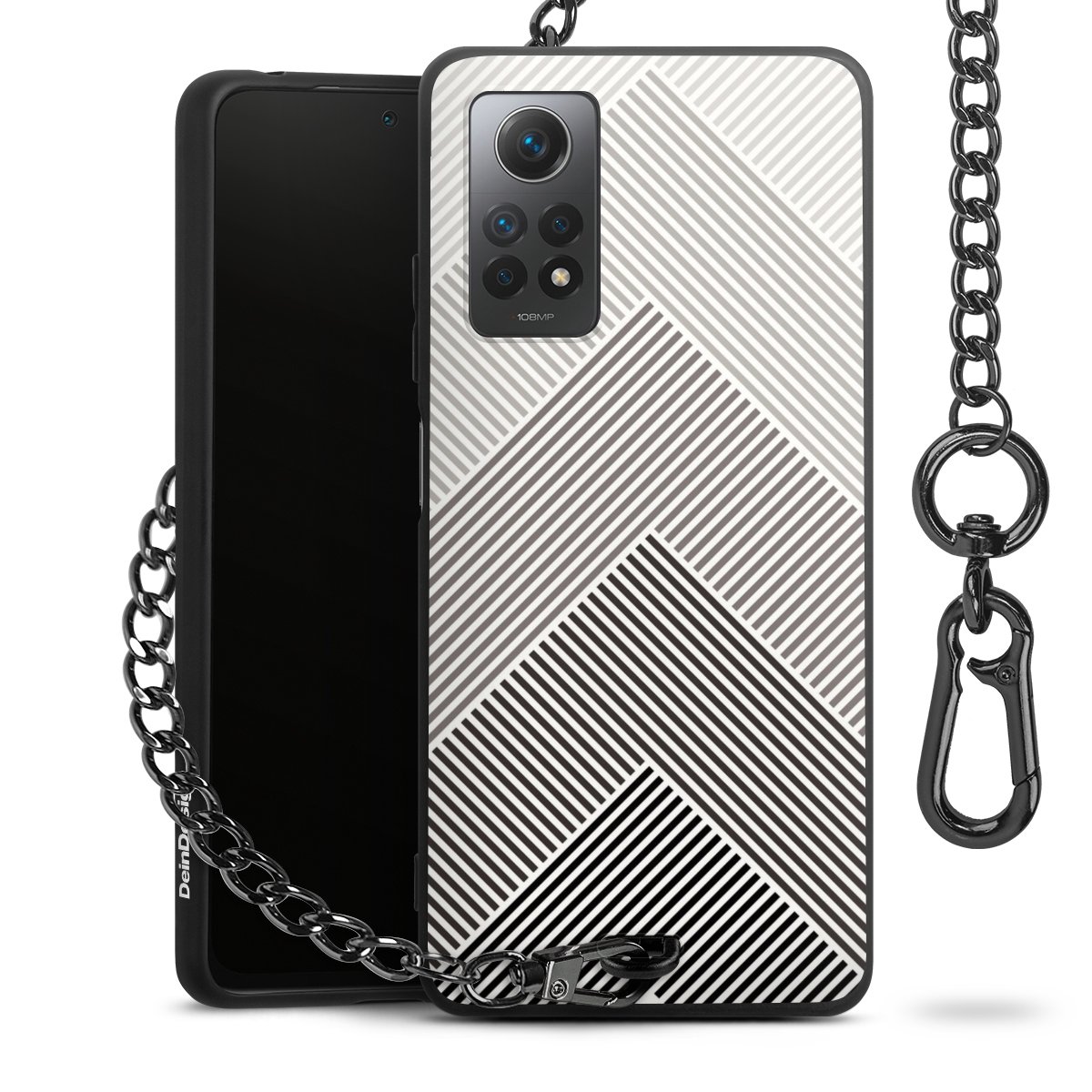 • Mattschwarze Handyhülle mit Metallkette