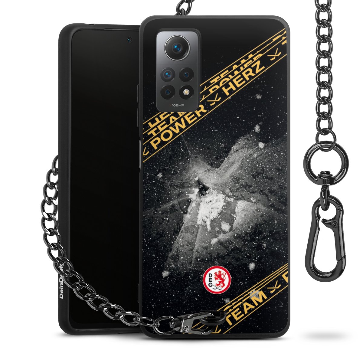 - Mattschwarze Handyhülle mit Metallkette
