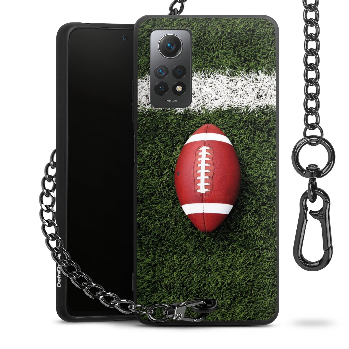 - Mattschwarze Handyhülle mit Metallkette