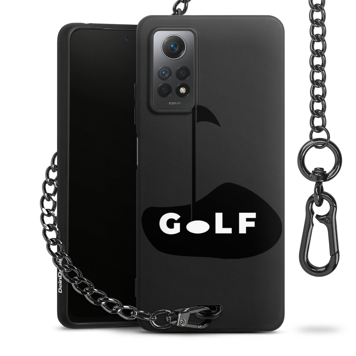• Mattschwarze Handyhülle mit Metallkette