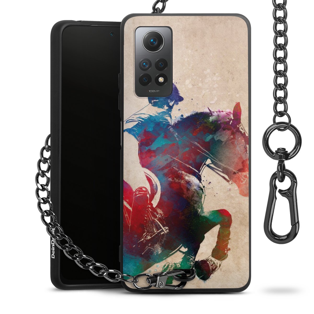 • Mattschwarze Handyhülle mit Metallkette