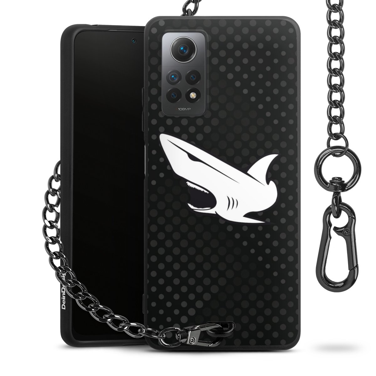 Die mattschwarze Silikon-Handyhülle besteht aus robustem TPU (thermoplastisches Polyurethan). Sie ist flexibel und schützt Dein Smartphone vor Stößen und Kratzern. Die Kette sowie der Karabinerhaken sind aus Metall in Gunmetal-Optik gefertigt. Für dieses Produkt kommen ausschließlich TÜV-geprüfte Materialien zum Einsatz.