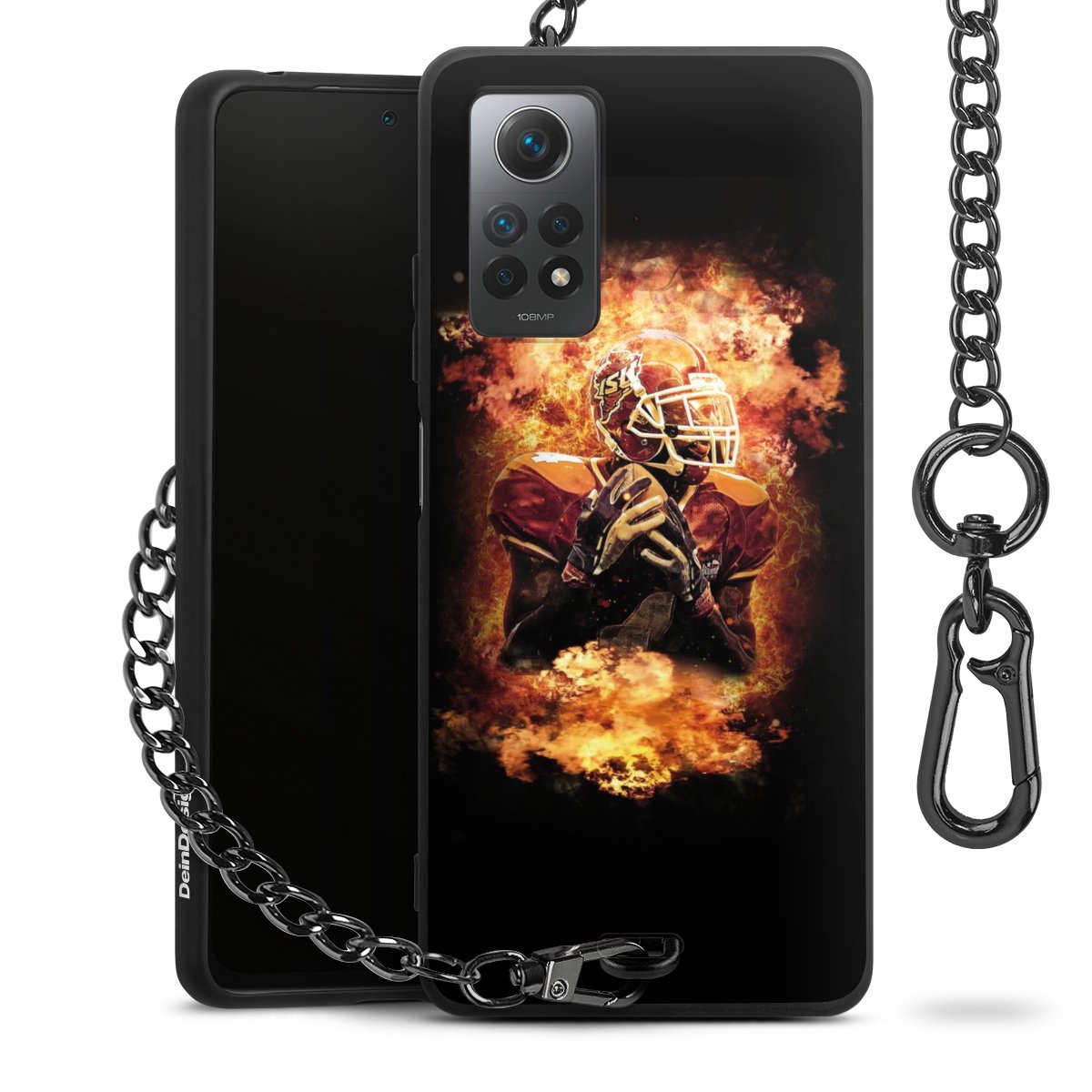 Die mattschwarze Silikon-Handyhülle besteht aus robustem TPU (thermoplastisches Polyurethan). Sie ist flexibel und schützt Dein Smartphone vor Stößen und Kratzern. Die Kette sowie der Karabinerhaken sind aus Metall in Gunmetal-Optik gefertigt. Für dieses Produkt kommen ausschließlich TÜV-geprüfte Materialien zum Einsatz.