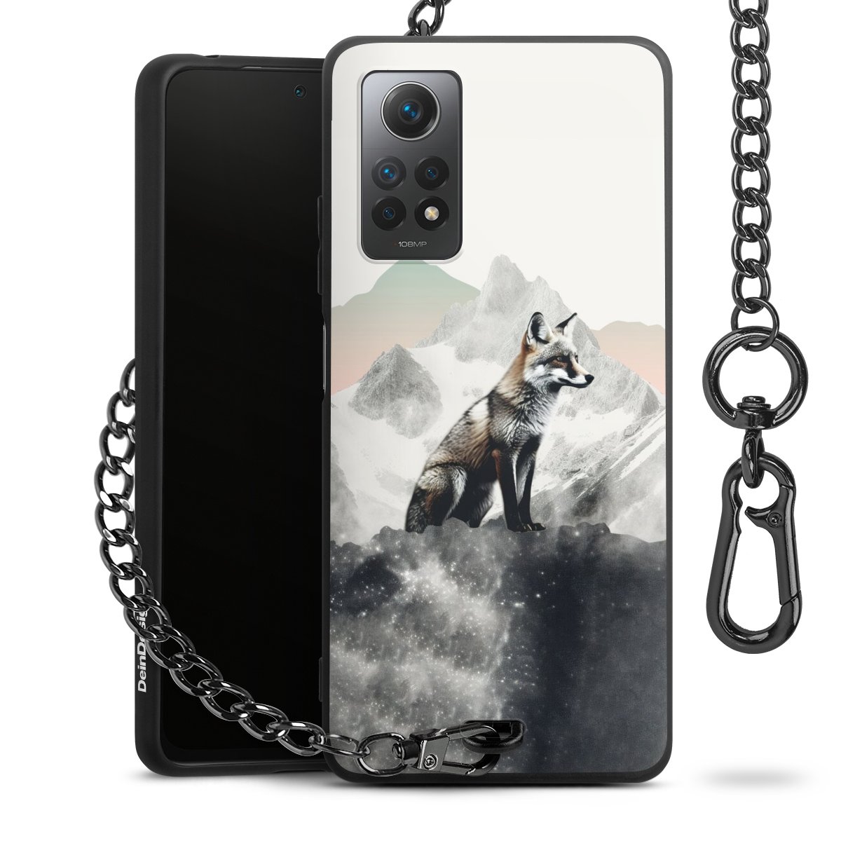 • Mattschwarze Handyhülle mit Metallkette