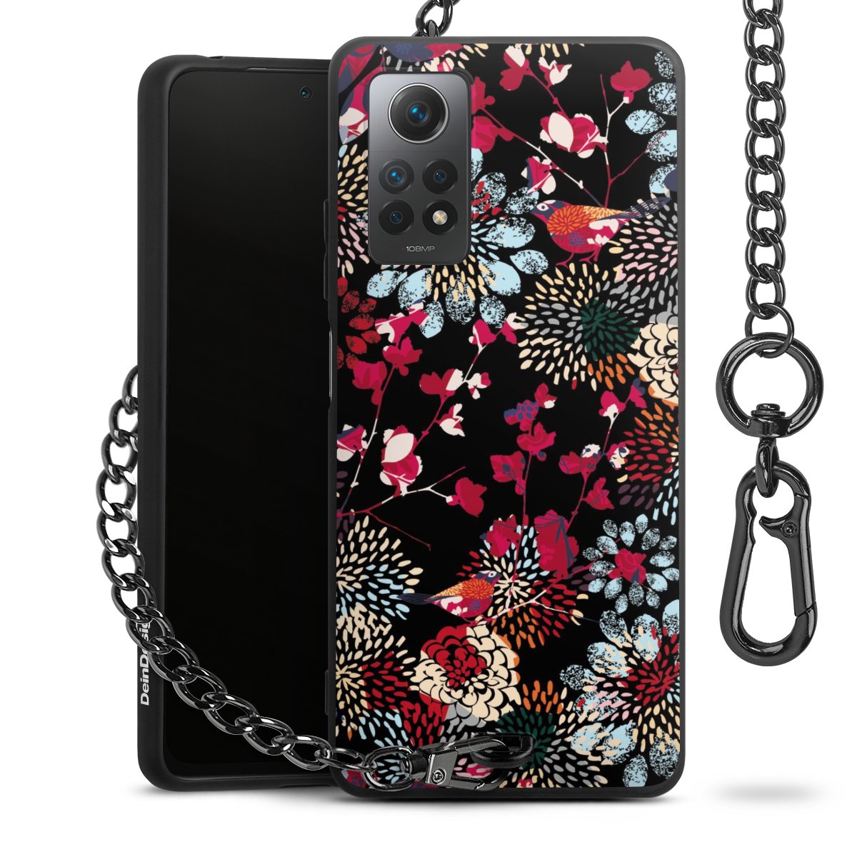 - Mattschwarze Handyhülle mit Metallkette
