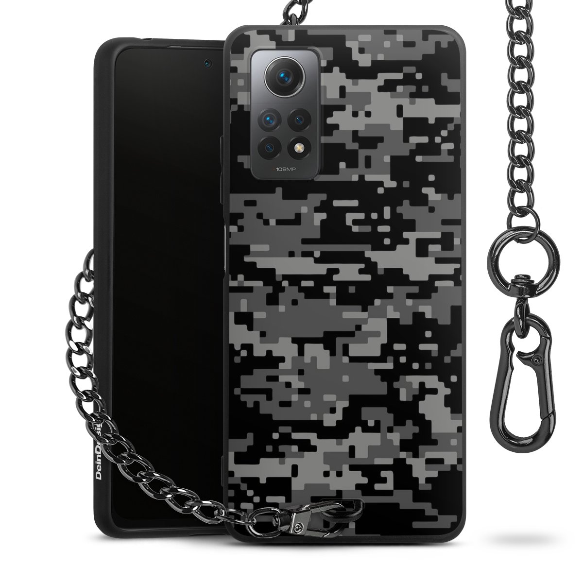 - Mattschwarze Handyhülle mit Metallkette
