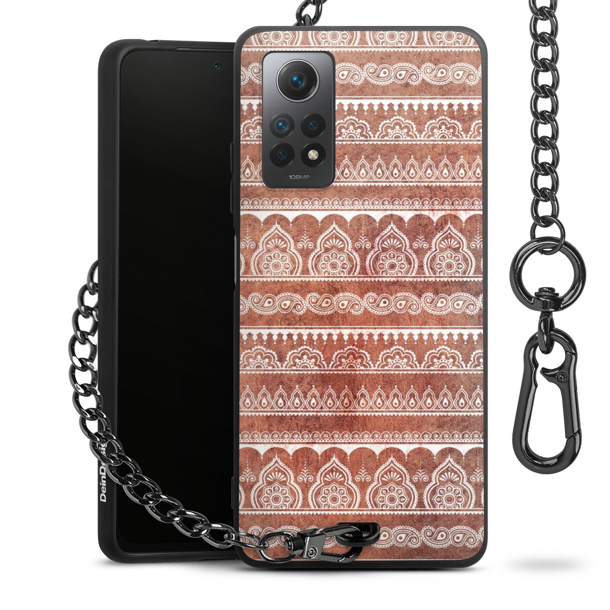 • Mattschwarze Handyhülle mit Metallkette