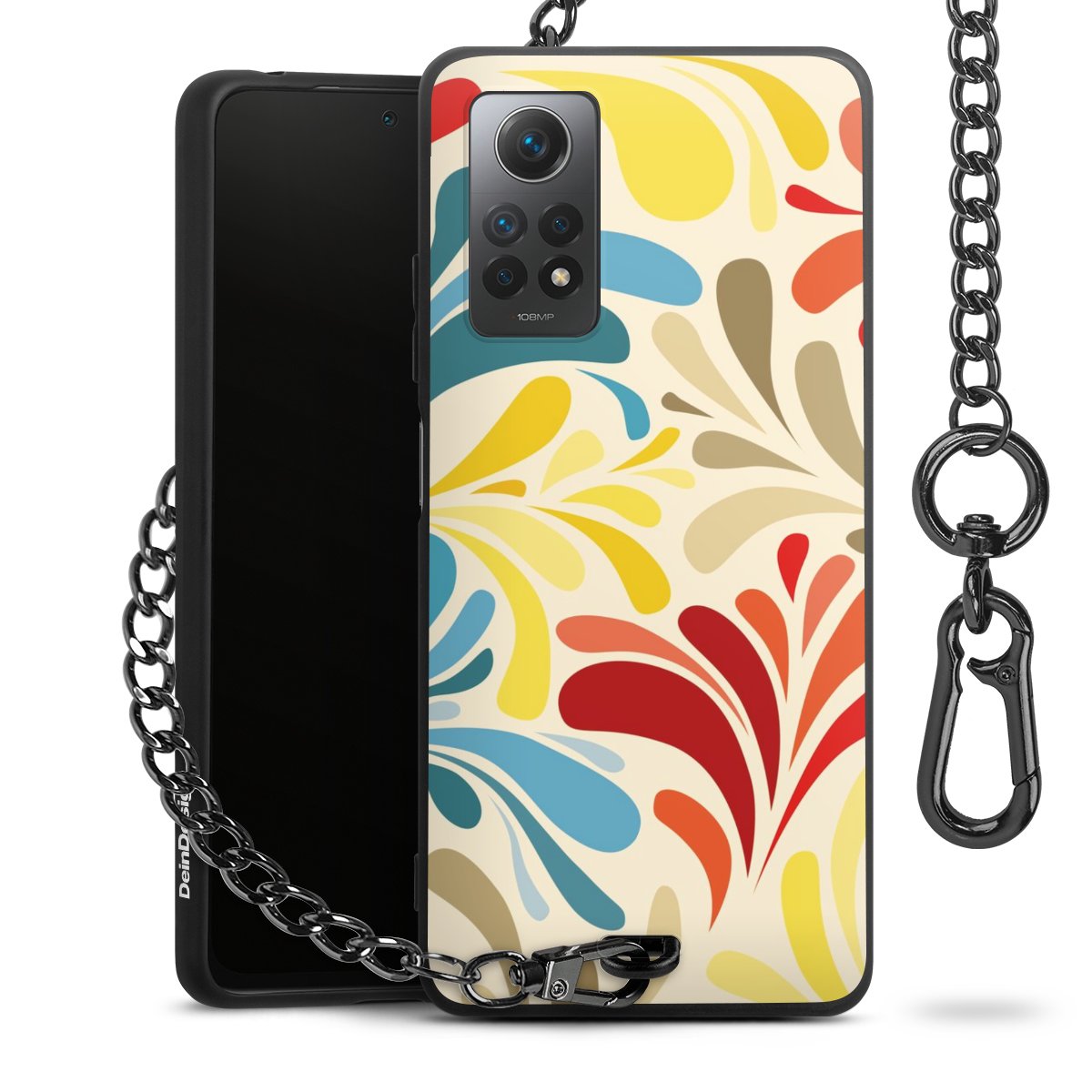 - Mattschwarze Handyhülle mit Metallkette