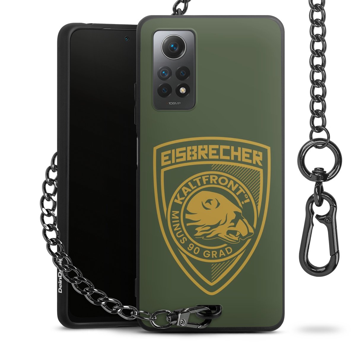 Die mattschwarze Silikon-Handyhülle besteht aus robustem TPU (thermoplastisches Polyurethan). Sie ist flexibel und schützt Dein Smartphone vor Stößen und Kratzern. Die Kette sowie der Karabinerhaken sind aus Metall in Gunmetal-Optik gefertigt. Für dieses Produkt kommen ausschließlich TÜV-geprüfte Materialien zum Einsatz.