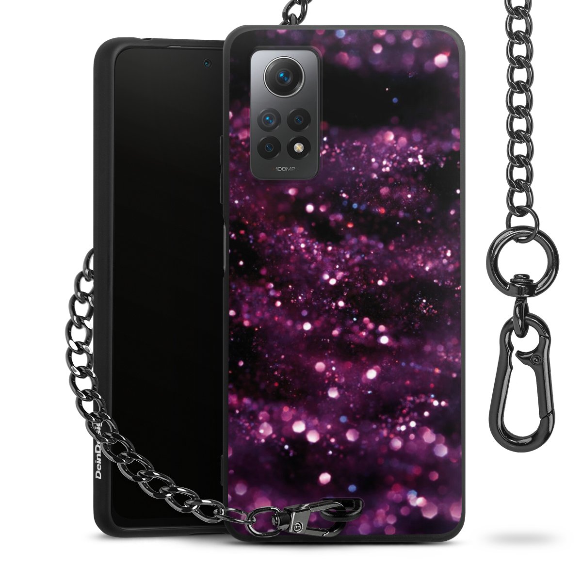 - Mattschwarze Handyhülle mit Metallkette