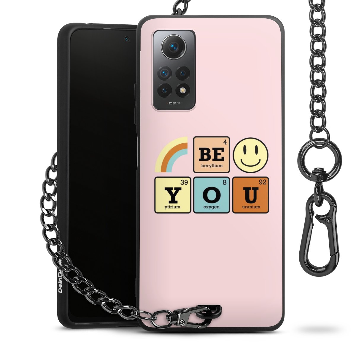 Die mattschwarze Silikon-Handyhülle besteht aus robustem TPU (thermoplastisches Polyurethan). Sie ist flexibel und schützt Dein Smartphone vor Stößen und Kratzern. Die Kette sowie der Karabinerhaken sind aus Metall in Gunmetal-Optik gefertigt. Für dieses Produkt kommen ausschließlich TÜV-geprüfte Materialien zum Einsatz.