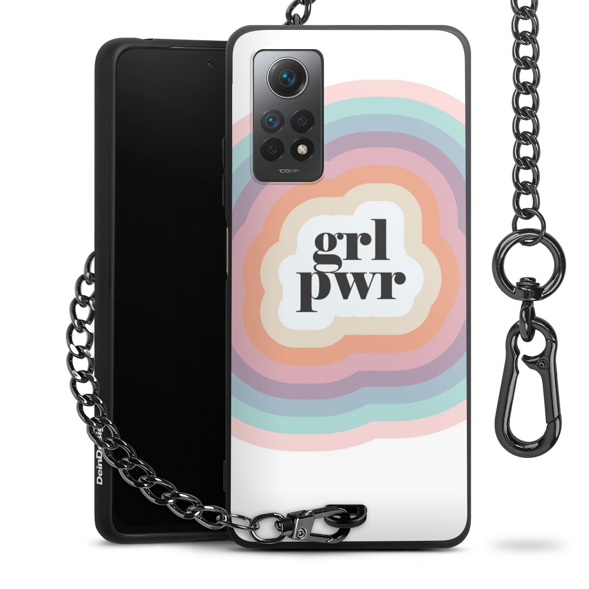 Die mattschwarze Silikon-Handyhülle besteht aus robustem TPU (thermoplastisches Polyurethan). Sie ist flexibel und schützt Dein Smartphone vor Stößen und Kratzern. Die Kette sowie der Karabinerhaken sind aus Metall in Gunmetal-Optik gefertigt. Für dieses Produkt kommen ausschließlich TÜV-geprüfte Materialien zum Einsatz.