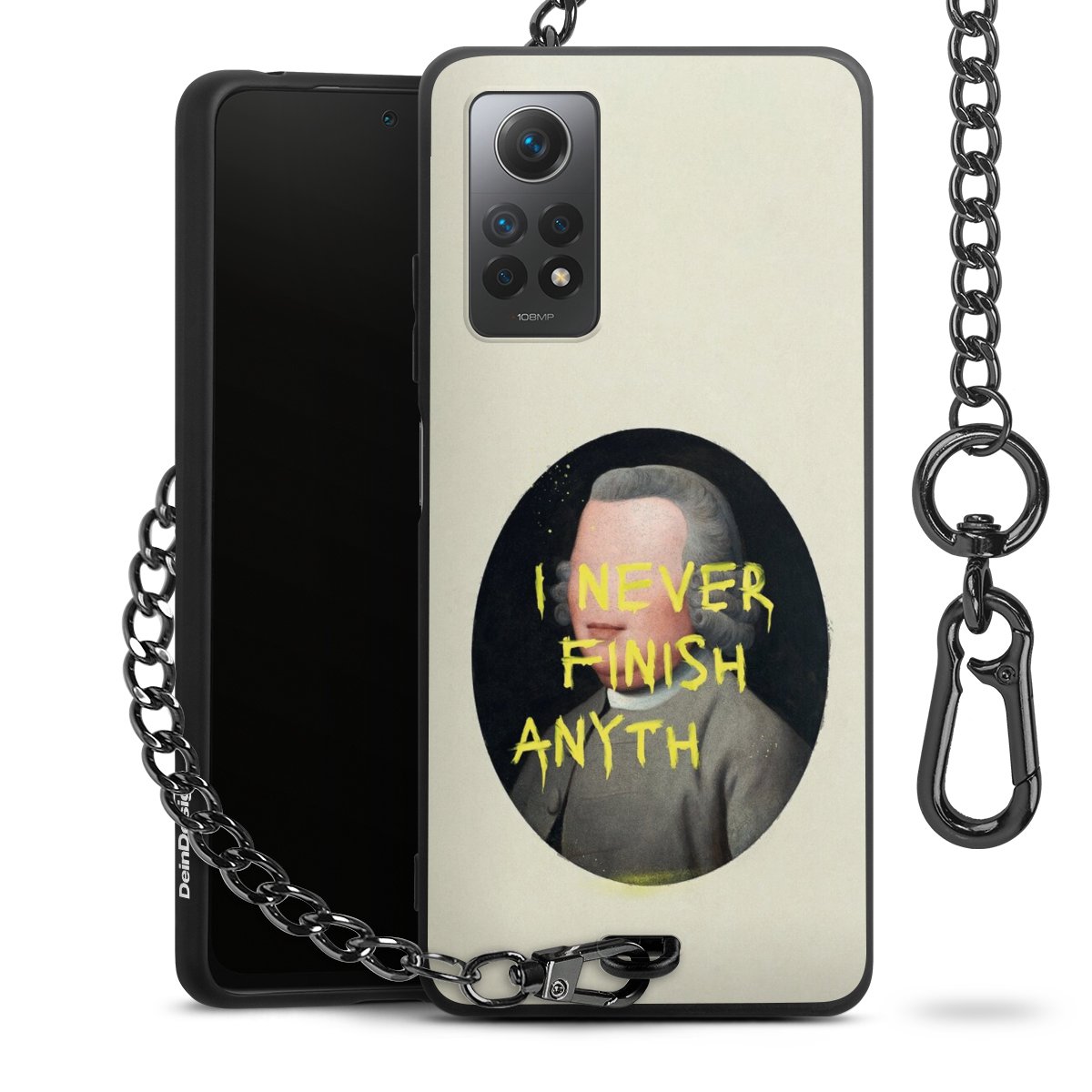 • Mattschwarze Handyhülle mit Metallkette